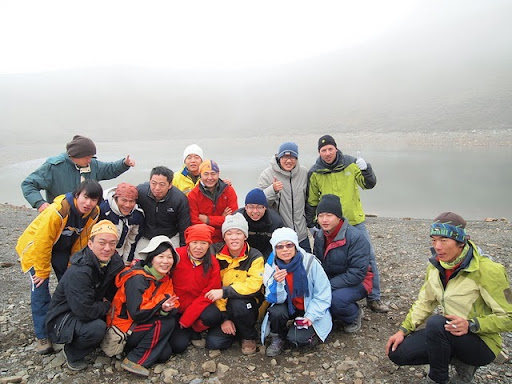 大家自然把握這短暫的餘裕在湖畔大拍團體照兼錄製登山感言,順便理解本團團員其實大有來頭,